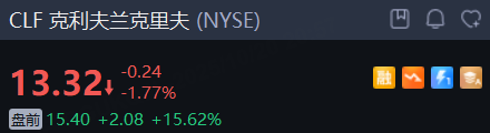克利夫兰克里夫盘前涨超15%。