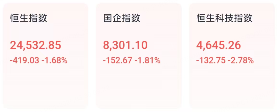 3月30日周一,港股市场开盘普跌。恒生指数下跌1.68%,国企指数下跌1.81%,恒生科技指数下跌2.78%,红筹指数下跌1.07%。
