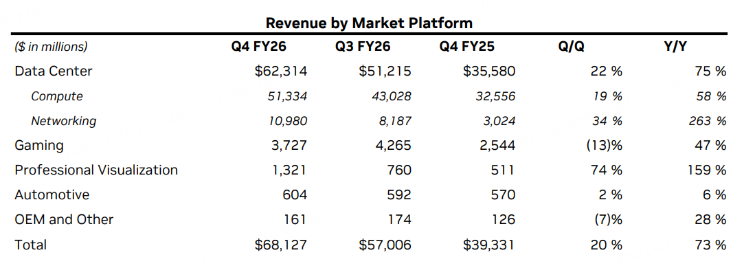 其中,数据中心业务收入623.14亿美元,同比增长75%;游戏业务收入37.27亿美元,同比增长47%;专业可视化业务收入13.21亿美元,同比增长159%;汽车领域收入6.04亿美元,同比增长6%;OME及其他业务收入1.61亿美元。