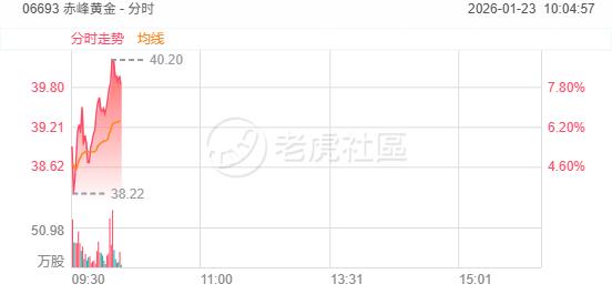 1月23日,港股黄金股盘中涨幅扩大,赤峰黄金涨近8%,中国黄金国际、紫金黄金国际涨超5%,潼关黄金涨超4%,山东黄金涨超3%。