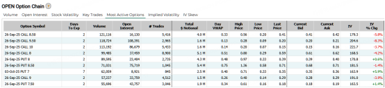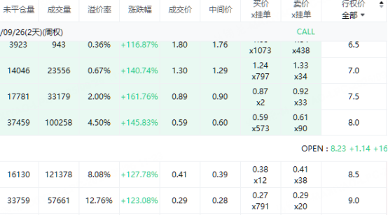 此外,多张明日到期行权价6.5-9美元的看涨期权最低涨幅翻倍。