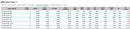 阿里大涨超8%,期权合约成交较90日平均暴涨3倍达688,035张。其中明日到期的180美元看涨期权交易量较高,共有51,605份合约交易。
