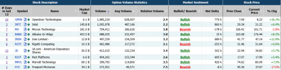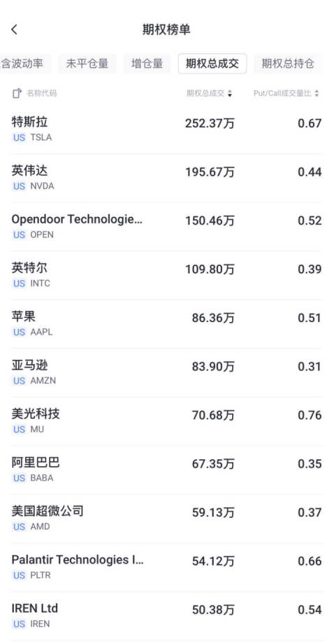昨日,Opendoor大涨超15%,期权合约成交较90日平均上涨2.4倍达1,485,219张。其中明日到期的8.5美元看涨期权交易量较高,共有121,116份合约交易。