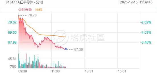 12月15日,部分半导体概念股盘中走低,华虹半导体、英诺赛科跌超6%,中芯国际跌超2%。