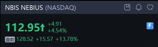 NEBIUS 大涨近14%。Meta计划在未来五年内向NEBIUS投入高达270亿美元的资金。