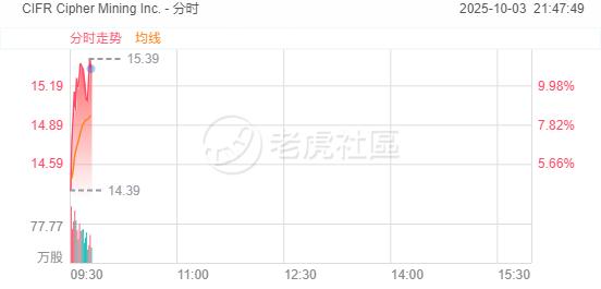 10月3日,美股加密矿企概念股持续活跃,Cipher Mining、嘉楠科技大涨超10%,CleanSpark、TeraWulf、Hut 8涨超5%,IREN、MARA涨超3%。