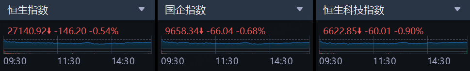 10月3日,港股三连升后出现回调,三大指数全天水下震荡,恒指成功守住两万七大关。截止收盘,恒生指数跌0.54%或146.2点,报27140.92点,全日成交额为1347.81亿港元;恒生国企指数跌0.68%,报9658.34点;恒生科技指数跌0.9%,报6622.85点。全周来看,恒指累涨3.88%,国指累涨3.82%,恒科指累涨6.9%。