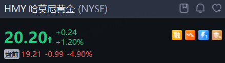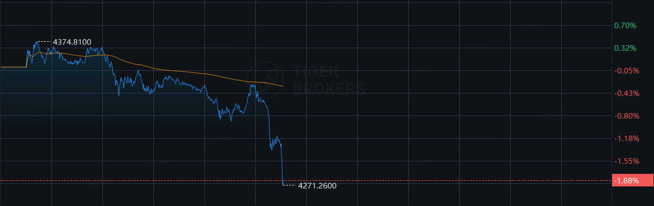现货黄金快速下挫,跌破4280美元,日内跌近2%。概念股盘前普跌,哈莫尼黄金 、 科尔黛伦矿业 跌超4%, 金田 、 金罗斯黄金 跌超3%,纽曼矿业跌超2%。
