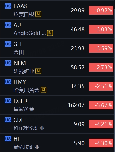 美股贵金属板块集体下挫!现货黄金日内向下触及3310美元/盎司