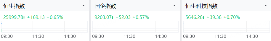 11月20日,港股三大指数高开,恒指涨0.65%,国指涨0.57%,恒生科技指数涨0.7%。