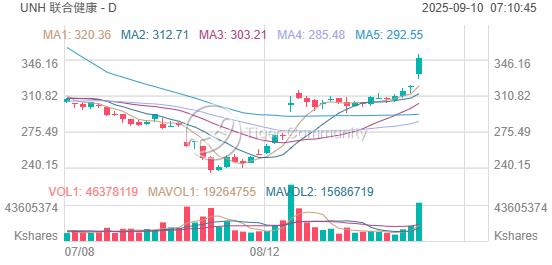 联合健康 (UnitedHealth Group Inc.,代码 UNH)的股价周二飙升 8.6%,创下四个月新高,成为标普 500 指数(SPX)成份股中的领涨者。这一涨幅使股价单日上涨 27.67 美元,约为道琼斯工业平均指数(DJIA)贡献了 180 点,而当天道指总共上涨了 196 点。
