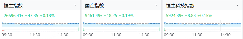 港股探底回升,三大指数午后转涨。截止收盘,恒生指数涨0.18%,恒生科技指数涨0.15%,国企指数涨0.19%。