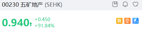 10月24日,五矿地产复牌高开近92%,截至发稿,涨91.84%,报0.94港元,成交额187.06万港元。