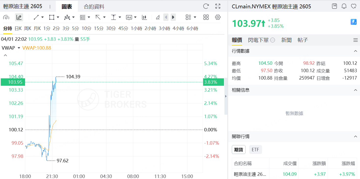 受此影响,WTI原油期货突破103美元/桶,日内涨约4%。特朗普称近期汽油价格上涨是“短期”现象,源于伊朗对油轮的袭击,并强调美国不再依赖中东石油,霍尔木兹海峡“过去不需要,现在也不需要”。