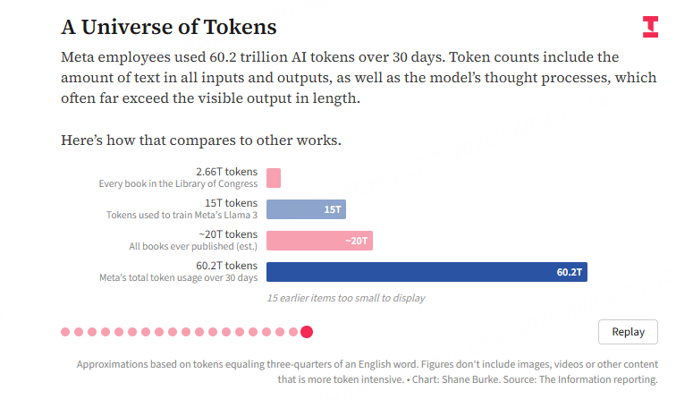在 Meta Platforms 内部,一些希望展示自己AI能力的员工,正在一份排行榜上竞争“Session Immortal(会话不朽者)”甚至更高等级的“Token Legend(Token传奇)”称号。
