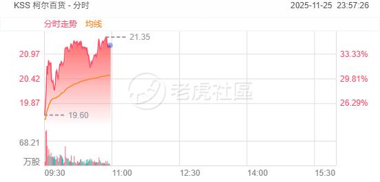周二,美国零售股普涨。柯尔百货 绩后涨幅扩大至35%, 梅西百货 涨近8%,美国达乐公司涨4%,劳氏涨超3%,沃尔玛涨2%。