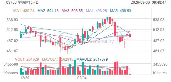 寧德時代:寧德時代將於下周一(9日)公布業績 股價上日挑戰500元關 寧德購 14026/沽 23981