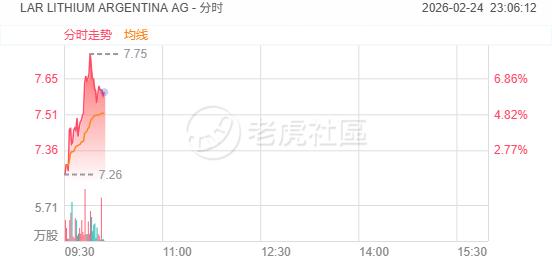 周二,锂矿概念股齐涨, LITHIUM ARGENTINA AG 盘中涨8%, 美国雅保 涨6%, Lithium Americas Corp. 涨近5%, 智利矿业化工 涨4%。