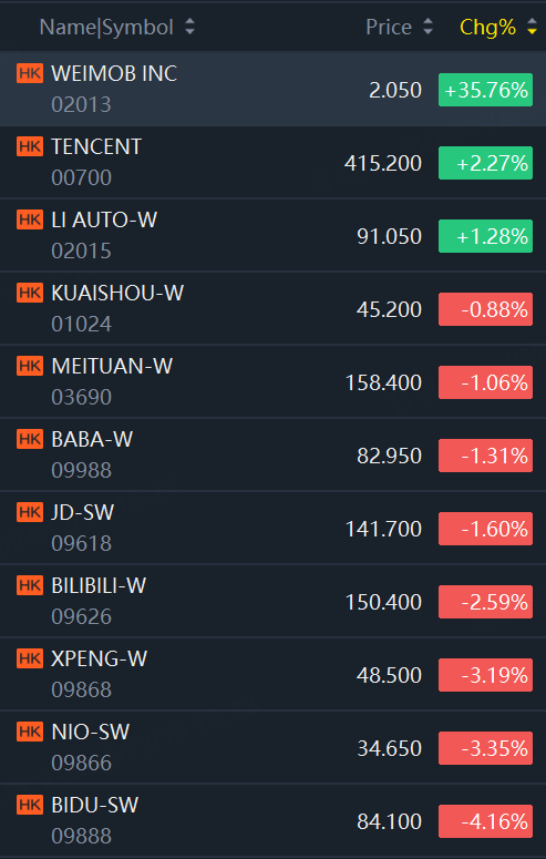 Weimob Inc Inc soared 35.76% while Tencent rose 2.27% as reports emerged that Apple is in early-stage talks with Tencent and ByteDance to integrate their AI models into iPhones sold in China. This news led to a 3% surge in Tencent's stock price, reaching a five-day high.