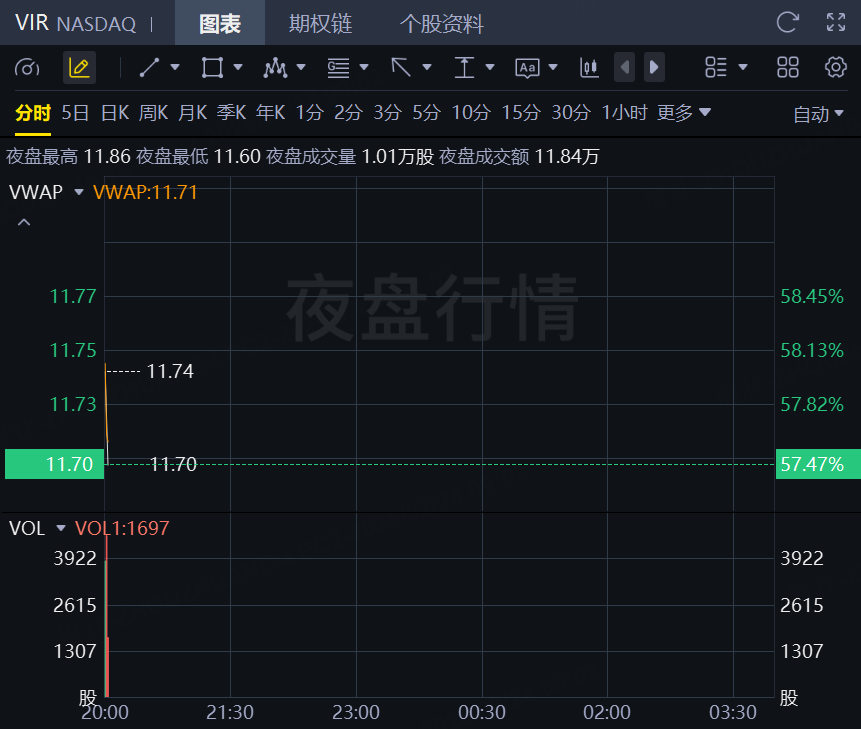2月24日,美股夜盘时段,Vir Biotechnology涨超57%,Q4营收同比增长417%,并宣布前列腺癌药物试验获积极结果并与安斯泰来达成重磅合作;