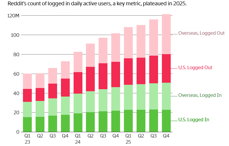 Reddit管理层近期表示,登录与未登录用户的区分重要性正在减弱,两类用户均可看到广告,价值趋同。公司正大力投入AI个性化推荐,提升整体用户粘性和停留时长,以吸引更多回归。最近,Reddit宣布将停止单独披露这两类用户数据,转而强调整体DAU增长(2025年整体加速)。