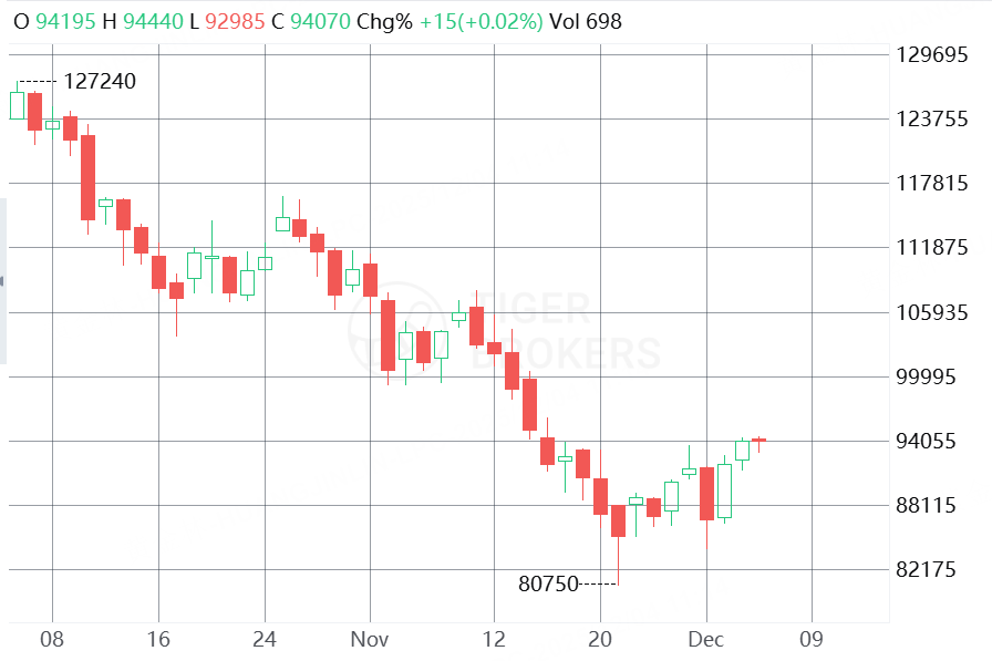 比特币价格走强,一度突破 94,000 美元关口,涨幅超过 2%,市场情绪同步回暖。