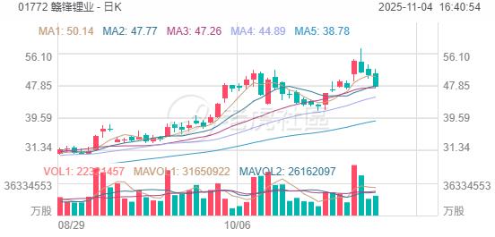 有色金属板块全线下跌,赣锋锂业跌近6%,洛阳钼业跌超5%,天齐锂业、江西铜业股份、金力永磁跌超4%,中国铝业跌超3%;