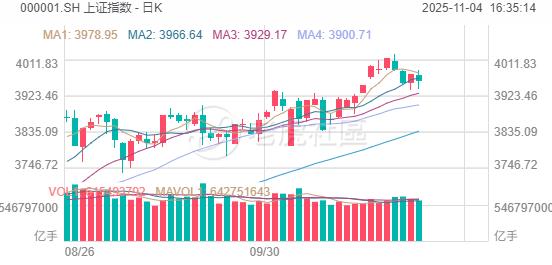 11月4日,A股三大指数今日集体下跌,截至收盘,沪指跌0.41%报3960点,深证成指跌1.71%,创业板指跌1.96%。全市场成交额1.94万亿元,较前一交易日缩量1945亿元,超3600股下跌。