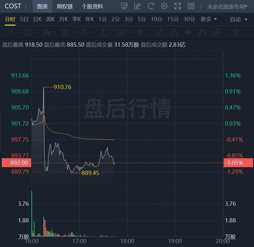 财报发布后,好市多美股盘后跌超1%。