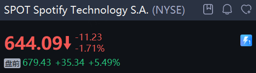 Spotify Technology S.A. 涨超5%。三季度总营收42.7亿欧元,高于预期;四季度活跃用户量及毛利率展望也好于预期。