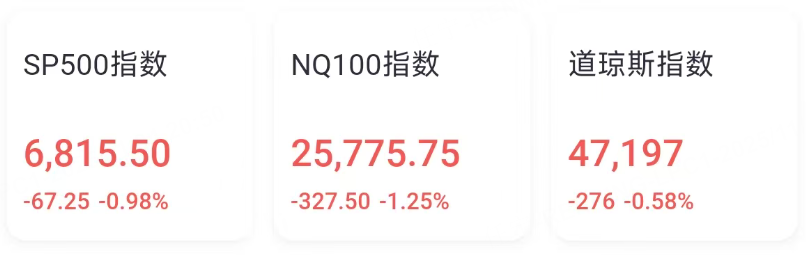同时, 英伟达、谷歌跌约2%,亚马逊跌1.7%,Meta跌1%,苹果跌0.8%,微软跌0.68%。