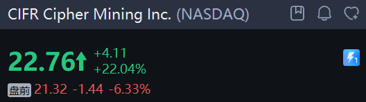 加密货币概念股盘前集体走弱, Cipher Mining Inc. 跌超6%,Robinhood、IREN跌超4%,BMNR、Coinbase、Strategy跌超3%。比特币日内跌超2.5%,跌破10.4万美元关口。