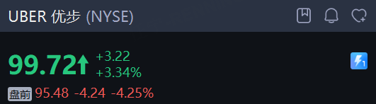 优步跌超4%。优步三季度营收134.7亿美元,预估132.6亿美元;每股收益3.11美元;调整后税息折旧及摊销前利润22.6亿美元,预期22.7亿美元;总预订额497.4亿美元,预估489.6亿美元。