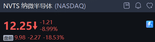 纳微半导体 大跌超18%。公司三季度营收为 1011 万美元,略高于分析师预期的 1001 万美元。公司当季 经调整后每股亏损 0.05 美元,符合市场预期。不过,总营收同比大幅下降,去年同期为 2170 万美元。