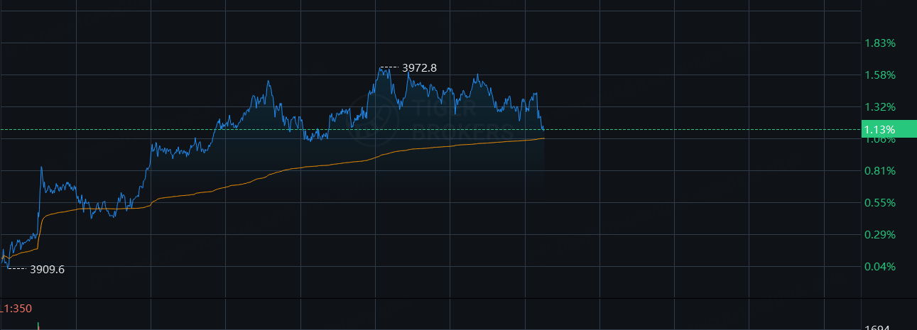同时,英伟达跌1.3%,英特尔涨超2%。