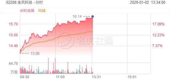 1月2日,港股电力设备股午后涨幅持续扩大,金风科技涨超20%,上海电气涨超7%,哈尔滨电气、东北电气、伟能集团涨超5%。