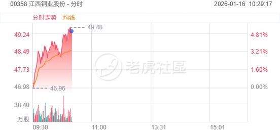 港股有色金属板块多数上涨!江西铜业股份涨超5%,洛阳钼业涨超4%