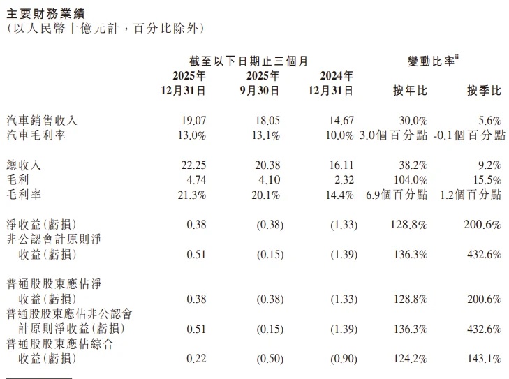 小鹏汽车 2025年第四季度营收222.5亿元人民币,同比增长38.2%,市场预估216.4亿元。