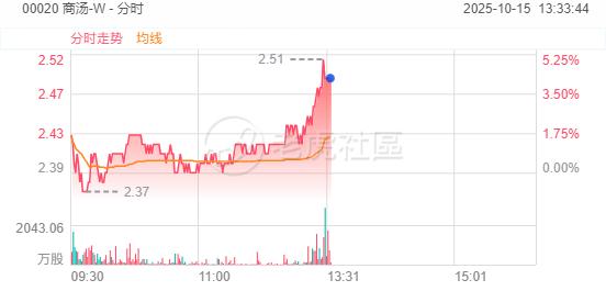10月15日,商汤-W午后快速走高,现涨超4%!商汤科技与寒武纪达成战略合作,双方将积极推进最新型号的软硬件产品适配。