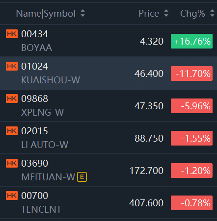 HK Stocks Closed Lower. Kuaishou Fell 11.70%, Boyaa Interactive Surged 16.8%