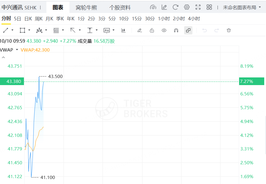 10月10日,港股中兴通讯盘初涨超7%,股价再创历史新高。