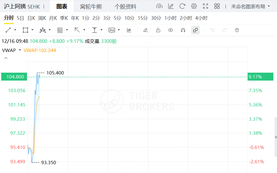 12月16日,部分新消费概念股盘初上扬,沪上阿姨涨超9%,蜜雪集团涨超3%,古茗涨近3%,名创优品、老铺黄金跟涨。
