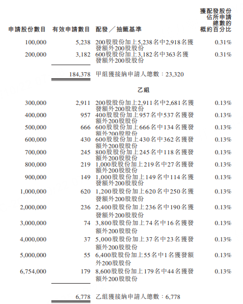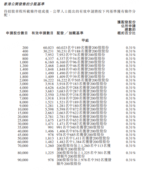 公开发售部分超额认购549.99倍,认购一手200股,中签率0.31%。