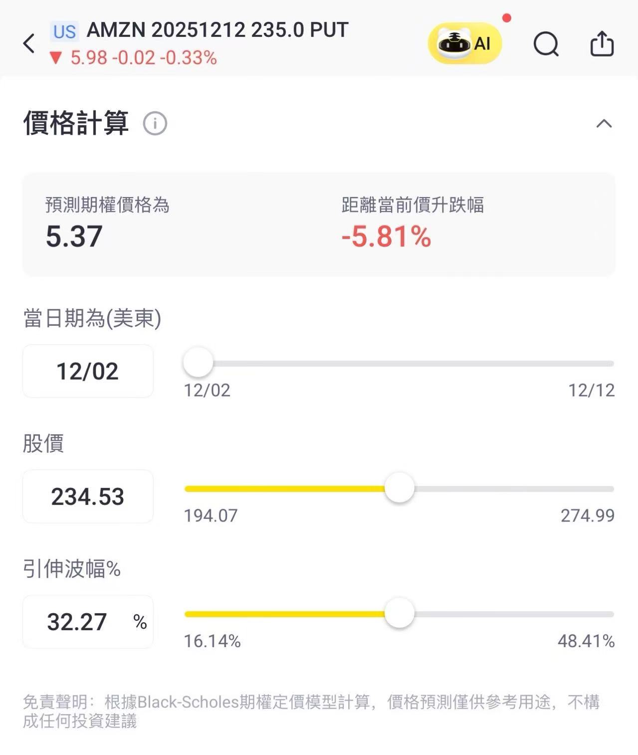 结构:买入一张12月12日到期、行权价为235的 PUT(或其他PUT)