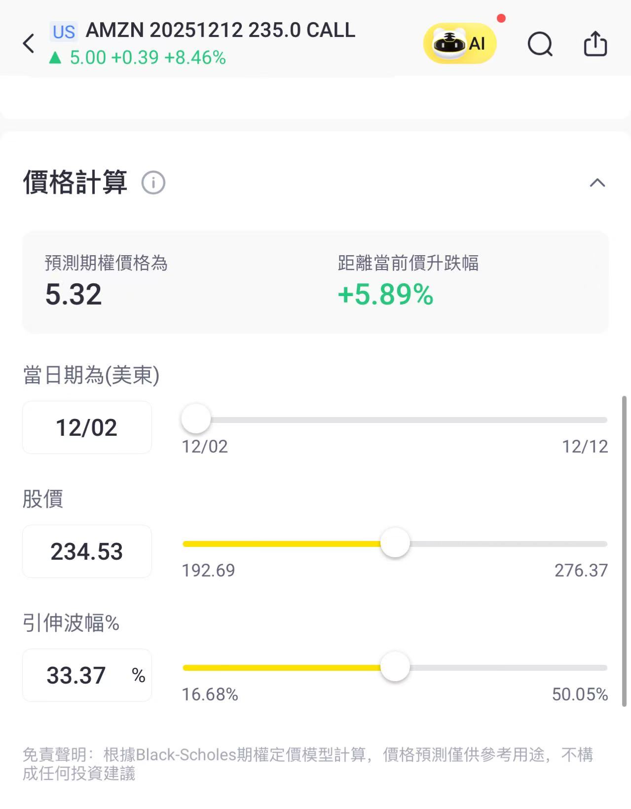 买入一张12月12日到期、行权价为235的 Call