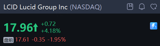 电动汽车制造商 Lucid Group Inc 跌近2%。Lucid三季度营收同比增长68%至3.4亿美元,低于市场预期的3.8亿美元;调整后每股亏损2.65美元,而市场预期亏损2.27美元。