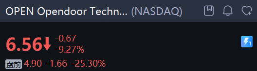 Opendoor Technologies Inc 暴跌25%,三季度利润大幅不及预期,预计第四季亏损将进一步扩大。