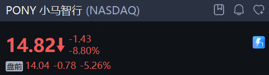 部分中概股盘前走弱。截至发稿,小马智行跌超5%,文远知行跌近5%,阿里巴巴、小鹏汽车、哔哩哔哩跌超2%。理想汽车跌超1%。