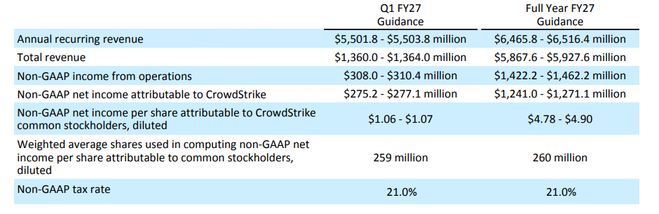 不过,去年7月19日Windows宕机事件的影响仍体现在财务数据中。公司披露,与该事件及相关事项有关的成本在2026财年扩大至1.177亿美元,高于上一财年的6010万美元。但从单季看,相关费用已降至1620万美元,低于上年同期的2100万美元,表明冲击正在逐步减弱。