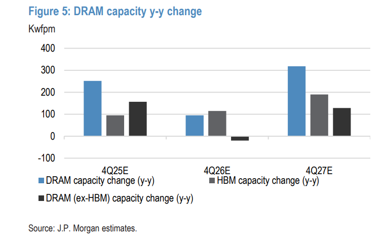 尽管存储厂商宣布了一系列产能扩张计划,但摩根大通认为其实际产生的位元供应增长将被物理迁移挑战所抵消。